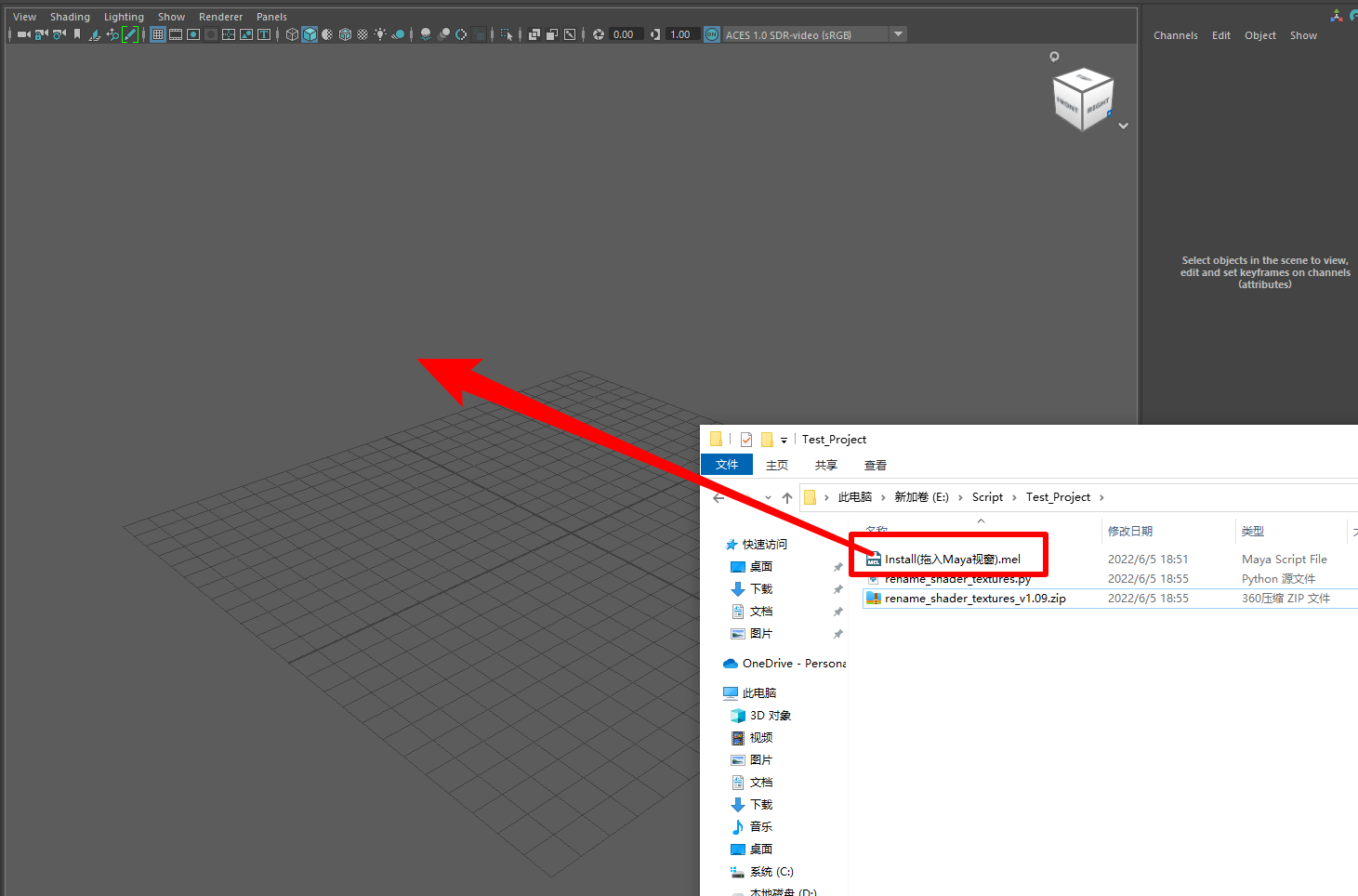 3. 将解压到的Install文件拖入到Maya的视窗内