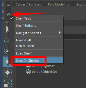 6. 然后保存工具架,下次打开Maya,就可以直接在工具架上运行这个工具了