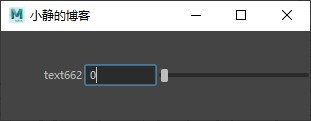 import maya.cmds as cmds cmds.window(title='小静的博客', widthHeight=(350, 150) ) cmds.rowLayout( numberOfColumns=3, columnWidth3=(80, 75, 150), adjustableColumn=2, columnAlign=(1, 'right'), columnAttach=[(1, 'both', 0), (2, 'both', 0), (3, 'both', 0)] ) cmds.text() cmds.intField() cmds.intSlider() cmds.showWindow() - 参考